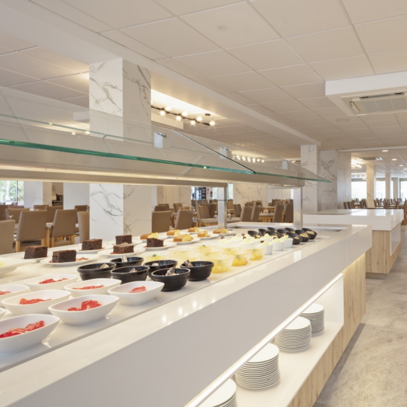 Le restaurant principal, avec sa cuisine ouverte et son service buffet, vous invite à découvrir une cuisine variée mêlant saveurs locales et inspirations internationales.