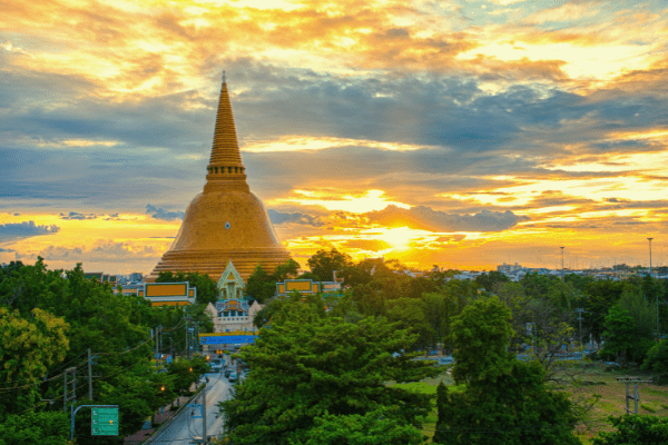 Petit-déjeuner. Départ très tôt le matin pour la visite du marché flottant de Damnoen Saduak, où vous découvrirez les canaux au milieu de barques aux activités multiples. Temps libre pour les achats. Continuation sur Nakhon Pathom et son chédi (127 mètres de haut). Retour à Bangkok. Déjeuner typique en ville. Visite du magnifique Palais Royal. Le Grand Palais Royal est l’un des plus magnifiques monuments de l’ancienne cour siamoise. Il a servi de résidence à tous les rois de Bangkok. Le site abrite plusieurs bâtiments remarquables : le Palais des Obsèques, le Palais de Réception, la Salle du Trône, le Hall du Couronnement, la Résidence des invités royaux, ainsi que le Wat Phra Keo, célèbre pour son exceptionnel Bouddha d’émeraude. Dîner-spectacle de danses thaïlandaises. Savourez la spécialité de Bœuf Massaman, un plat traditionnel de bœuf au curry rouge. Ce curry du sud de la Thaïlande est l’un des plus doux et parfumé des currys thaïs, un vrai régal pour le palais ! Petit tour dans Bangkok « by night » pour découvrir le Quartier Chinois avec ses ruelles étroites et ses allées bordées de magasins aux enseignes lumineuses et lanternes en papier offrant un spectacle nocturne unique. Promenade dans le plus grand Marché aux fleurs de Thaïlande où l’effervescence règne tous les soirs. N’hésitez pas, pour quelques centimes, à prendre un collier d’œillets jaunes pour faire une offrande au prochain temple ou acheter des graines que vous pourrez planter chez vous. Retour à votre hôtel. Nuit à l’hôtel.
