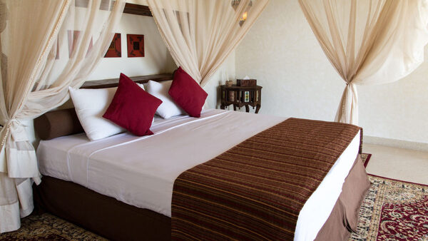 Votre chambre « Garden Room » est située au sommet d’une colline entourée par un jardin tropical luxuriant. Elle est spacieuse et décorée dans un magnifique style zanzibari et dispose de tout le confort nécessaire : Salle de bain privative, Véranda avec chaises longues et table, Climatisation, Moustiquaires, Poste de télévision, Minibar, Nécessaire pour se faire du café/thé, Sèche- cheveux, Coffre-fort, Téléphone et Accès gratuit au réseau Wi-Fi. Restauration : Dans le cadre de cette offre vous profiterez de la formule Demi-Pension. Entre le parfum des épices de Zanzibar, cuisine traditionnelle swahili, spécialités italiennes, grillades, menus du Moyen-Orient et plats de fruits de mer frais, vivez un véritable voyage culinaire dans les 3 restaurants de l’hôtel.