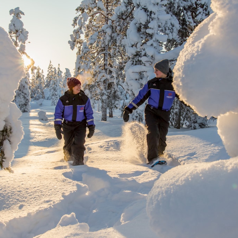 Le matin, départ pour une balade en raquettes accompagnée d’un guide local. Cette excursion permet de découvrir les paysages arctiques tout en apprenant davantage sur la vie en Laponie, sa faune et ses traditions (durée : 2h). Groupes adaptés au niveau des participants, avec possibilité d’accueil des enfants (activité déconseillée aux moins de 6 ans). Déjeuner au Club, après-midi libre et accès au sauna. Après le dîner, départ à pied pour une sortie nocturne à la recherche des aurores boréales, loin de toute pollution lumineuse. Votre guide vous expliquera ce phénomène naturel fascinant et vous donnera les clés pour l’observer par vous-même (durée : 2h). Nuit à l’hôtel.