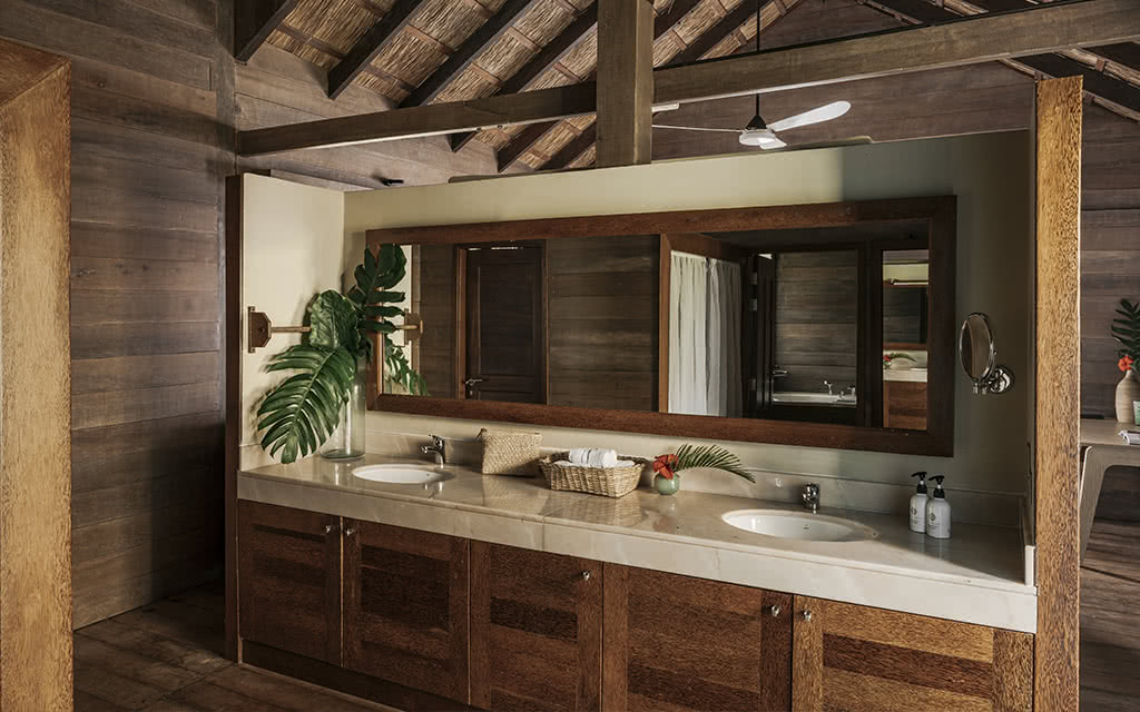 - Ocean View Bungalow – 65 m² Bungalow en bois avec toit makuti Vue mer directe Salle de bain avec douche extérieure Capacité : 2 adultes uniquement